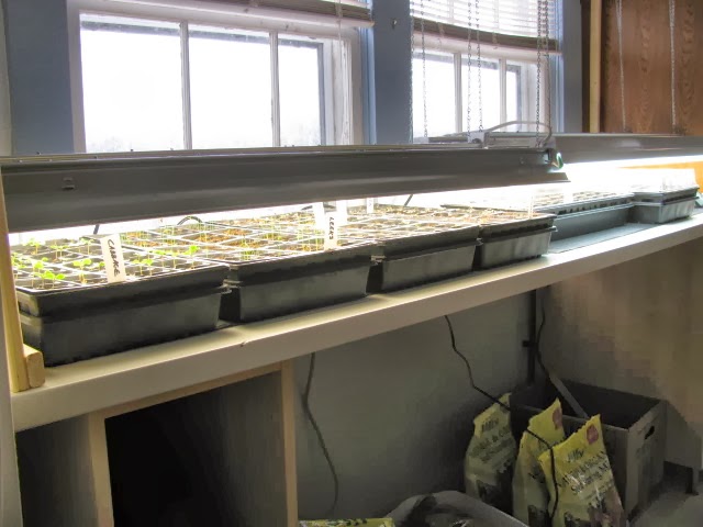 The seedlings are up and running.  Cabbage, Leeks, 2 varieties of Broccoli plus Broccoli Raab, Cauliflower, 2 varieties of Eggplant, and 8 varieties of Tomatoes.  About 280 seedling total so far.  In the next week we will sow all the peppers and some of the herbs, maybe around 100 more seedlings.
